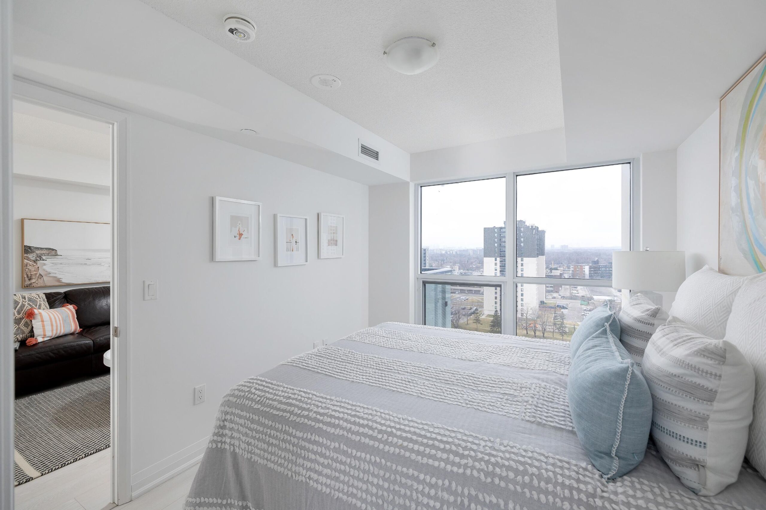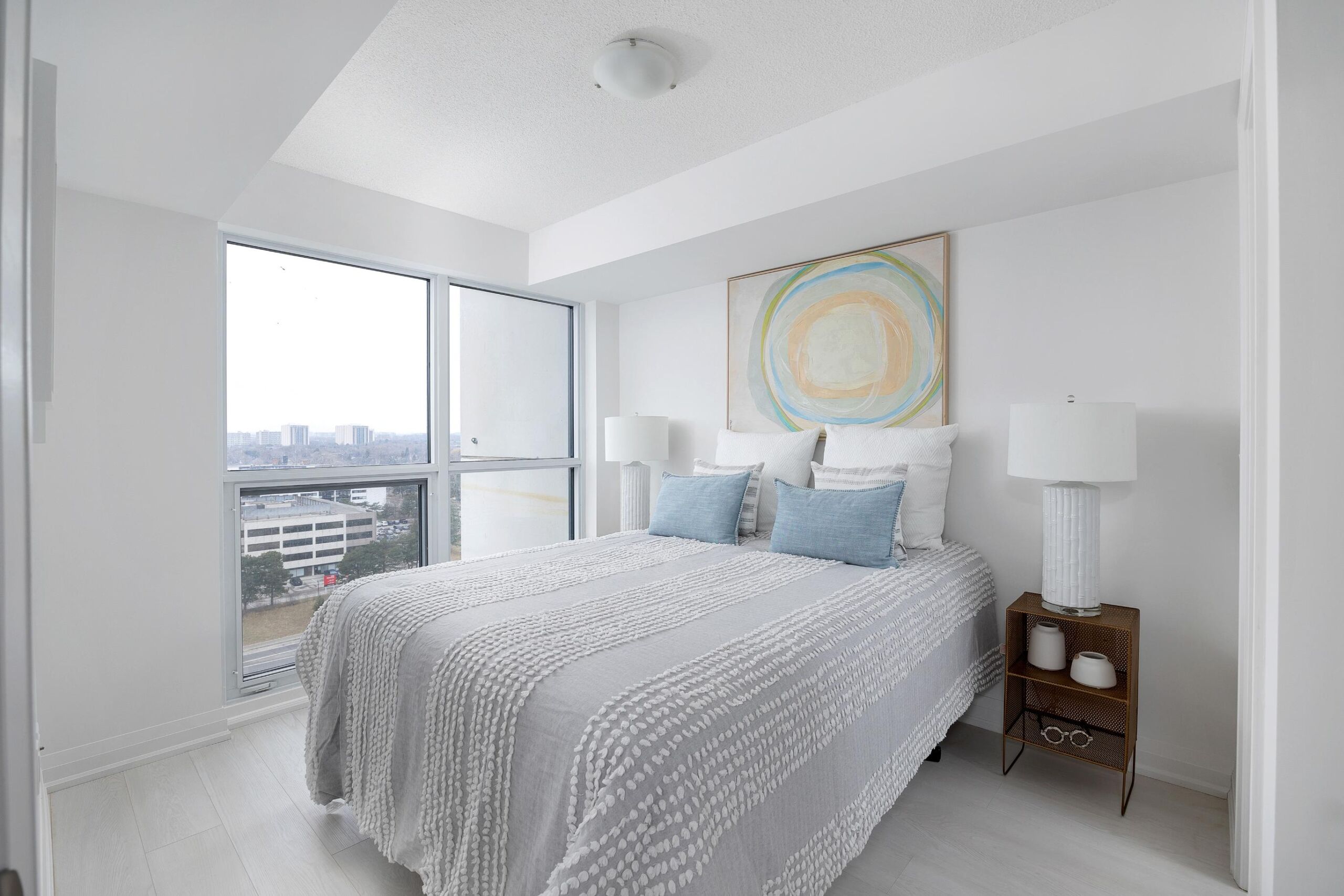 This 1+1 bedroom condo is bright and spacious and just waiting for the right tenant to move in. The open-concept design features a modern kitchen with stainless steel appliances, allowing you to take your culinary experiences to the next level. An oversized bedroom and bathroom lend a touch of luxury while providing plenty of storage space. And let’s not forget about the spacious outdoor balcony that provides you with a stunning view of the city.Building amenities include a concierge service, a party room, and an exercise centre. Restaurants, schools, shopping, and public transit are conveniently located nearby, and easy access to Hwy 427 makes this location a commuterโs dream.