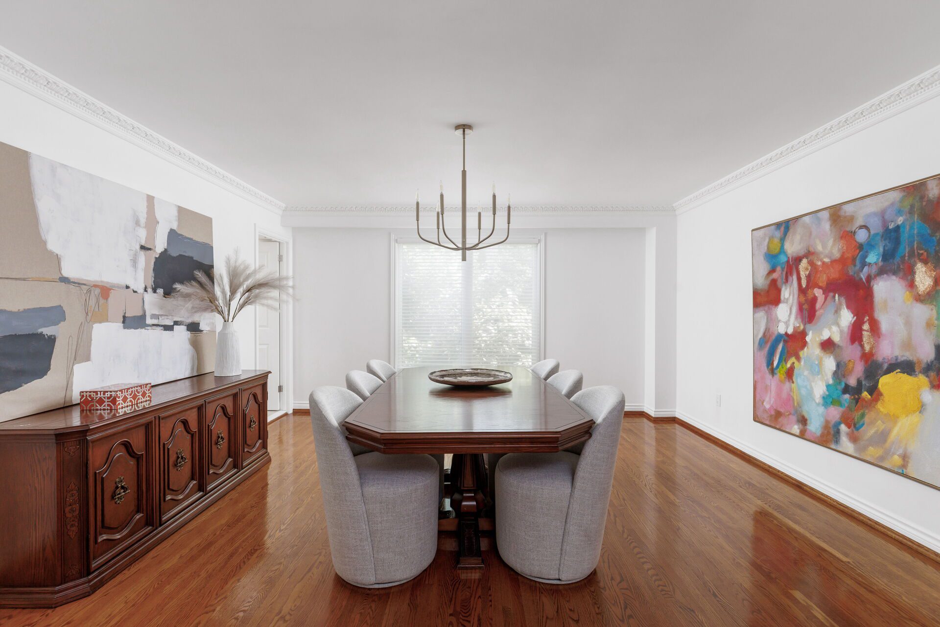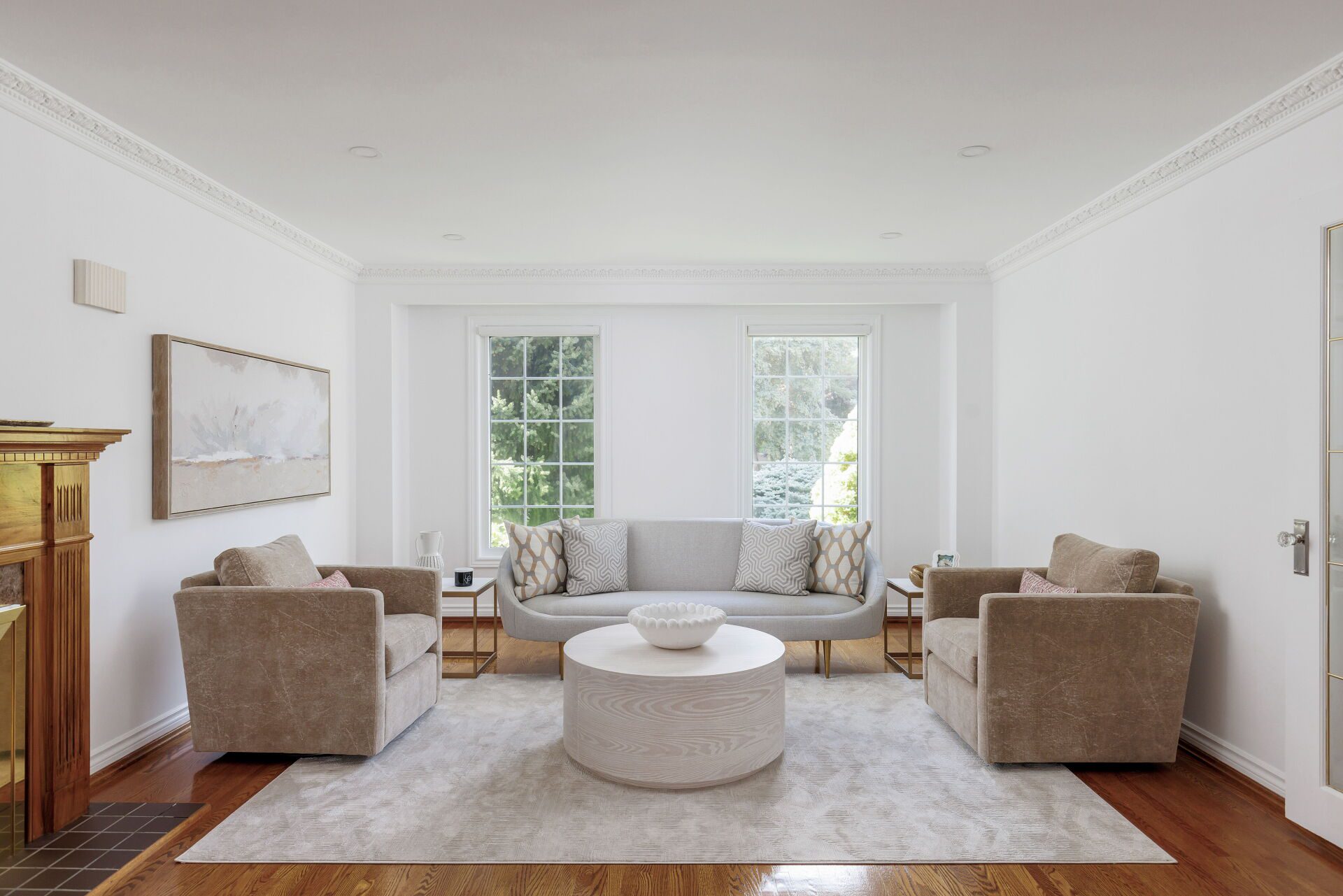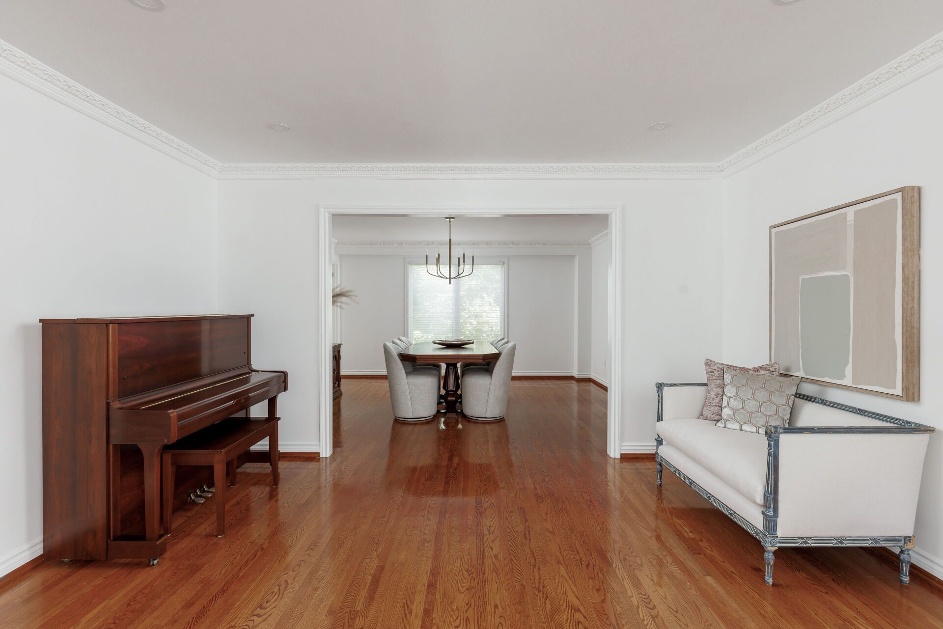 The main floor is a showcase of thoughtful design and warmth. The crown molding adds a refined touch, enhancing the richness and elegance of every space. Thoughtfully chosen, new light fixtures throughout are blended with strategically positioned pot lights and sconce lights.
