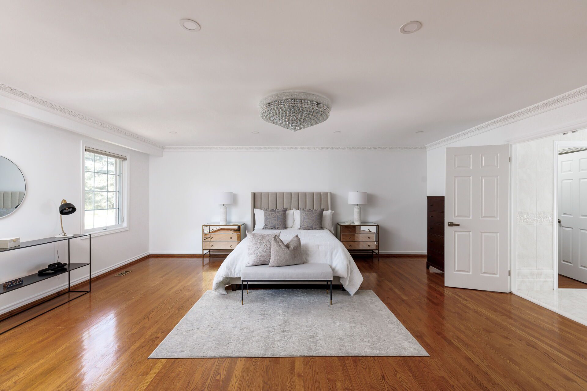 Step up to the second floor where the large windows flood each bedroom and hallway with natural light, creating a warm and inviting atmosphere throughout. Elegant crown moldings grace the hallway and bedrooms, adding timeless charm. Thoughtfully updated with stylish new light fixtures and new recessed pot lights, the entire space exudes both comfort and refined elegance – perfect for modern living with a classic touch. There are four spacious bedrooms each having direct access to a renovated ensuite bathroom and generous closet space. One defining attribute that sets this house apart is that each bedroom offers direct access to a private, fully updated bathroom. Yes, even the guest room has its own luxury ensuite! All bedrooms and the hallway have hardwood floor – this home is totally carpet-free.