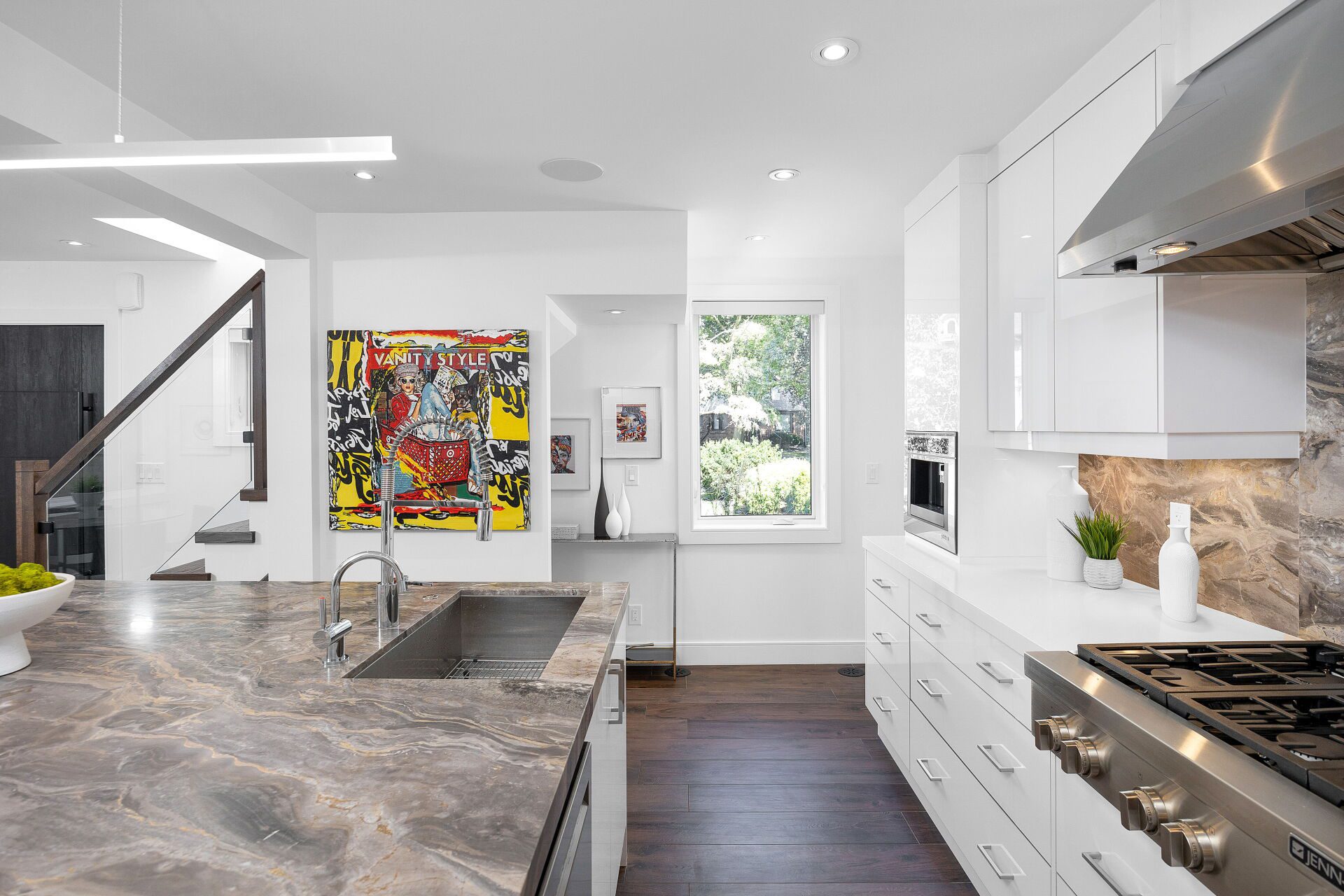 The first floor opens out to the exceptionally landscaped and private backyard with a wet bar that can also be used as a home office or 4th bedroom.