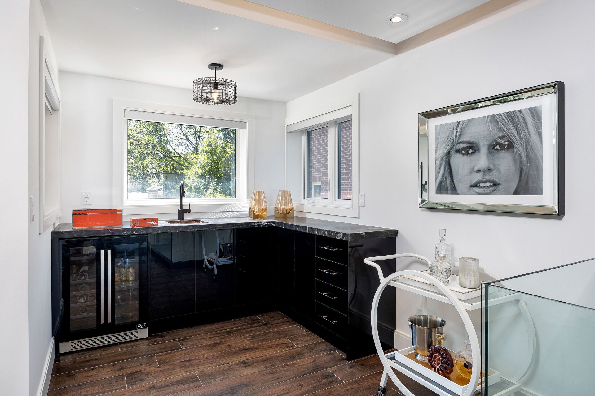 If you love entertaining, you will adore the exquisite oasis-like backyard with its outdoor sitting area complete with a cabana, built-in barbecue & pizza oven. If you’re more of the meditative type, you will find serenity in the private, oversized backyard. With mature trees shading the area, and a sunk-in swim spa, your backyard is transformed into your own private paradise.
