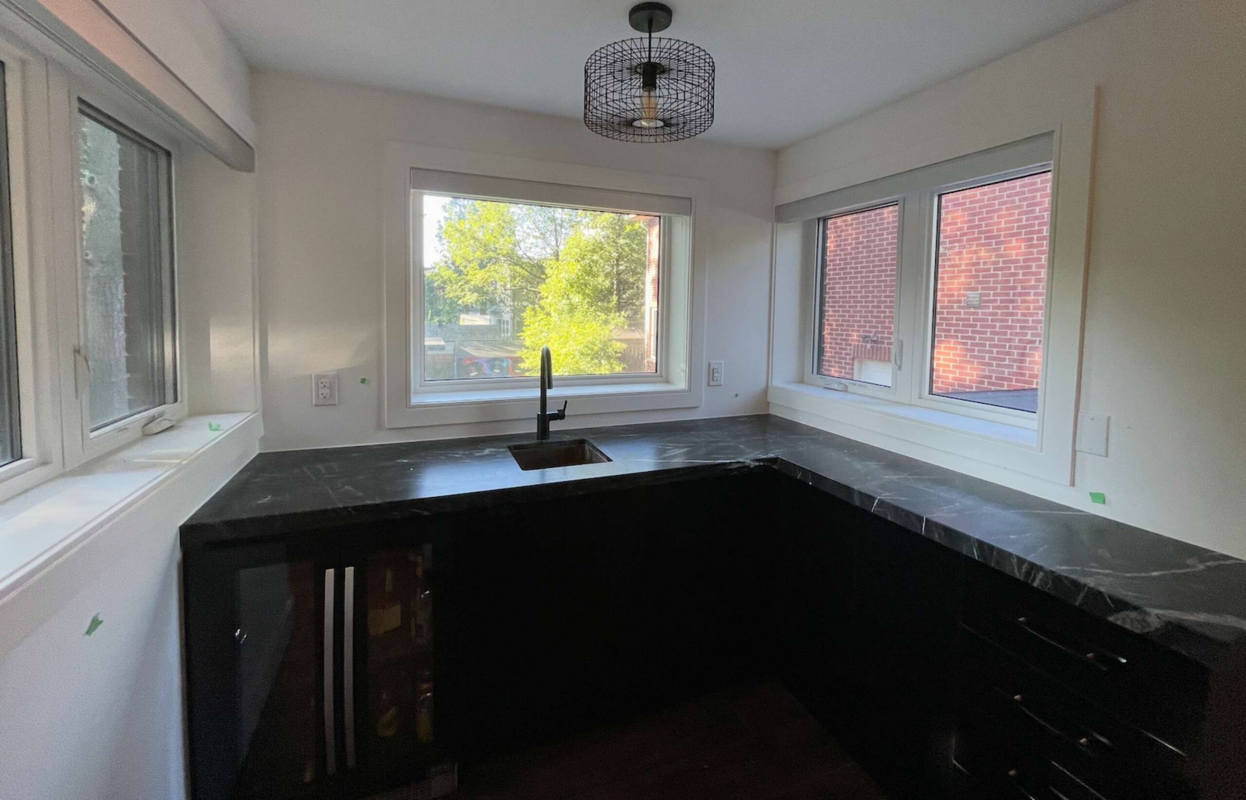 With three floors and 2,192 square feet of functional living space, you’ll love the light and airy layout. The main floor features a spacious kitchen complete with the highest-quality Jenn-Air appliances and an oversized marble island. The recessed kitchen leads the way to the large living room, complete with its very own wet bar.
