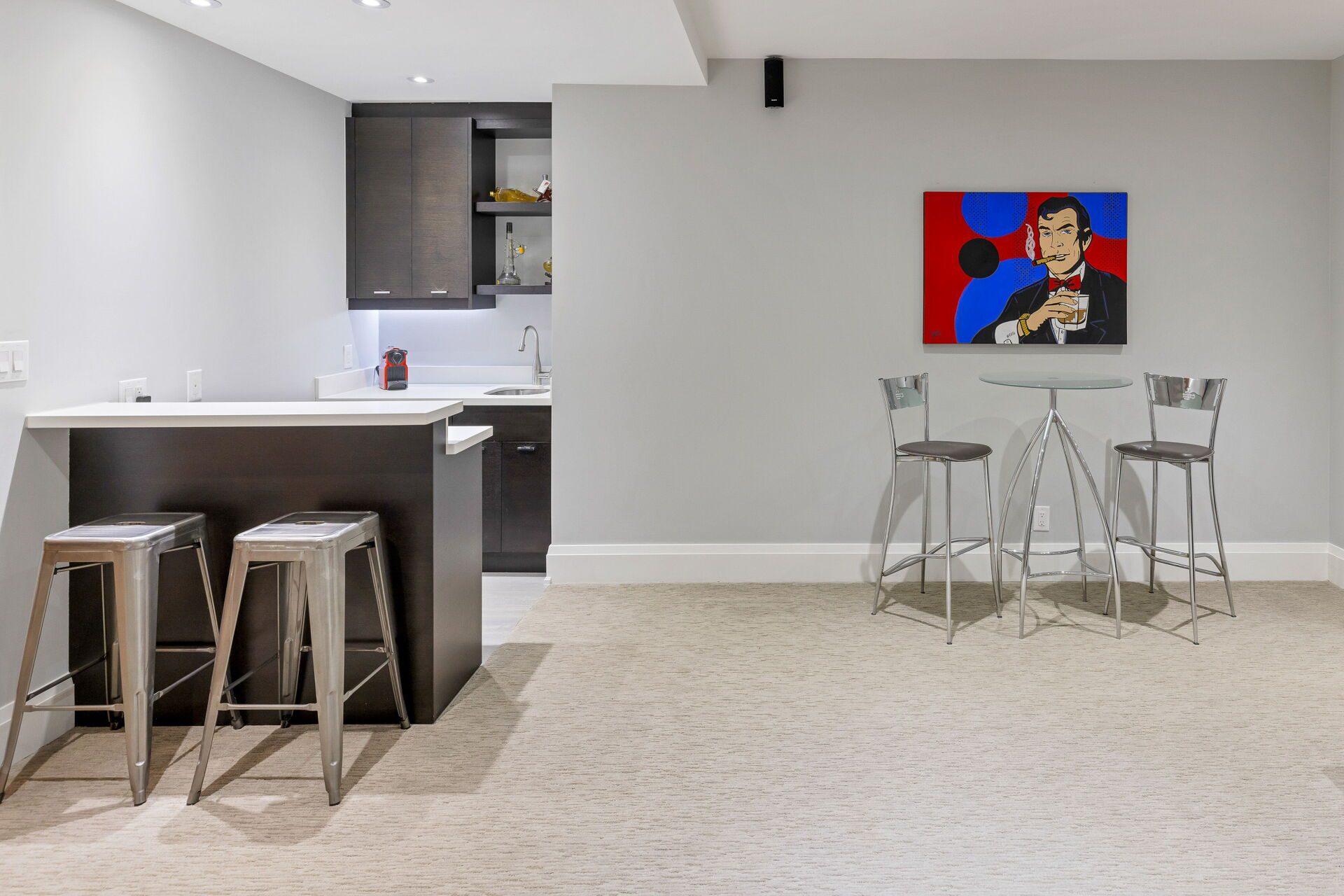 Downstairs, you’ll find an additional three-piece bathroom, bar, and exercise room, temperature controlled wine cellar, along with a separate movie studio with six recliner seats, allowing you to enjoy the latest flick in the privacy of your own home. A giant rec room features a built-in fireplace and entertainment system. A backup generator, surveillance cameras, speaker system, and all TVs (excluding the cabana) are included with this home purchase.