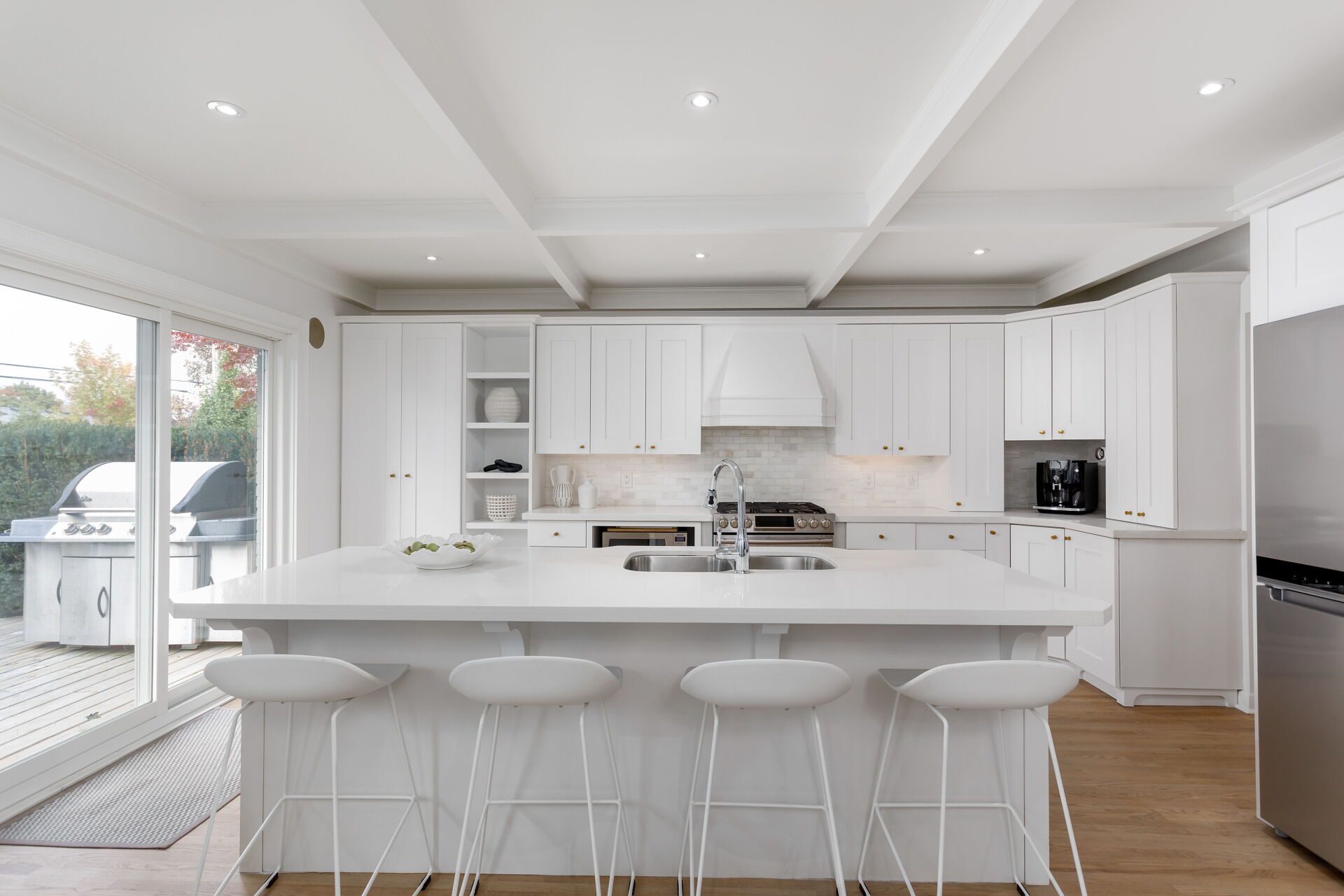 Picture a brilliantly reconfigured kitchen with intelligent design that means you’ll never need to search through drawers and cupboards for the right utensil or store your Vitamix in an inconvenient spot. A counter-depth fridge is functional without being overbearing, while generous new counters give you space to work in style.