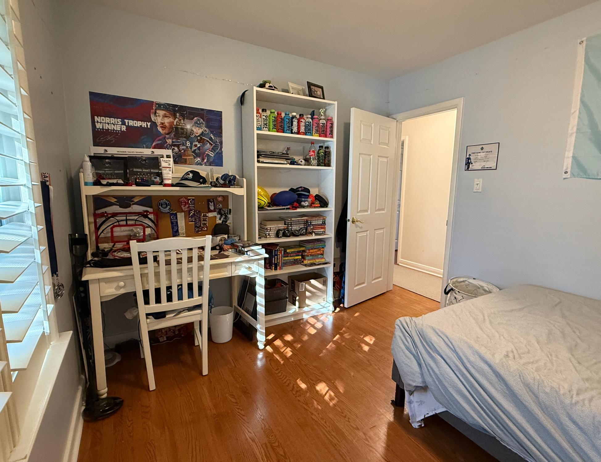 All four bedrooms are located on the upper level, with the primary ensuite fully remodelled and enlarged. There are too many upgrades to name: fresh paint, brand new fixtures in the hallway bathroom, and genuine hardwood floors throughout, all sanded and refinished.