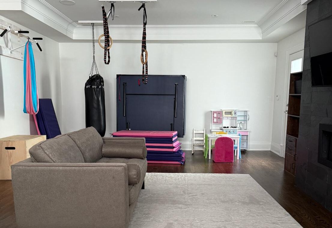The lower level features a gym, a guest bedroom, a cold cellar, and yet another full bath. An insulated storage room under the covered porch provides a hideaway for all your off-season toys and equipment. An oversized rec room brings the dance parties and game nights downstairs or makes a comfortable oasis for guests and visitors.